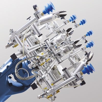 - Mould release agent: after injection, it is possible to integrate a robot equipped with suction cups that pick up the parts of the mould, thus cutting tools that remove the left-over plastic components such as the supply channels and dispose them for further processing.